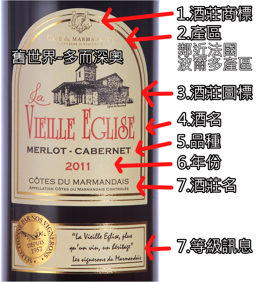 6.酒標差別。舊世界的酒標信息複雜,包含各項元素,便於消費者認知;新世界酒標信息簡單,不易從酒標信息中了解酒的好壞。